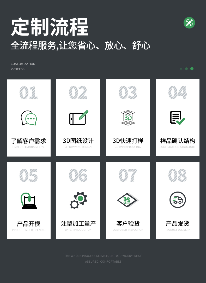 2.一定要找有自主開模,有研發(fā)實(shí)力的工廠。一般能自主開模的廠家都會(huì)自己開發(fā)公模,供客戶去定制顏色和各種工藝,不會(huì)產(chǎn)生產(chǎn)品專利等糾紛。