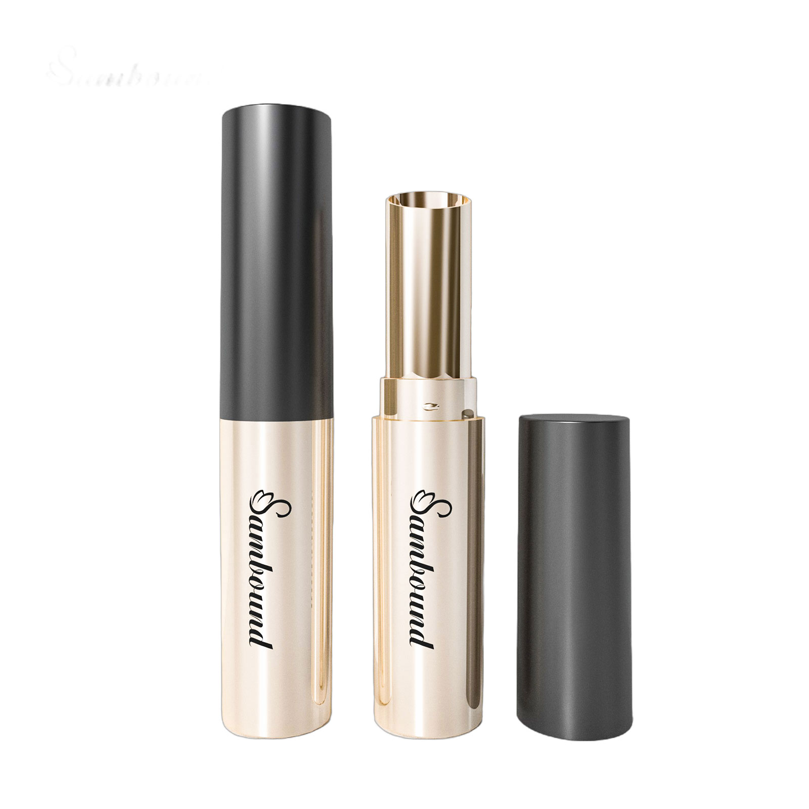 PP塑料外殼的口紅管,鋁制的中束。如果追求金屬質(zhì)感和更好的手感,還可以添加一層鋁制外殼。