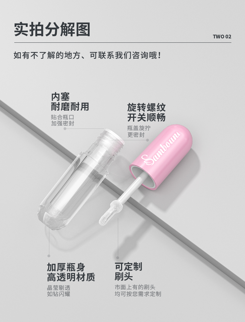 這款膠囊設(shè)計(jì)空唇泥管特點(diǎn):加厚瓶身高透明材質(zhì),可定制刷頭、顏色及l(fā)ogo,容量3 85ml
