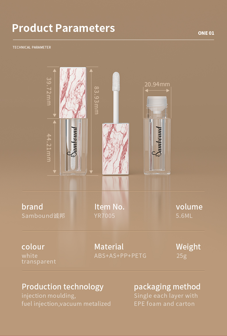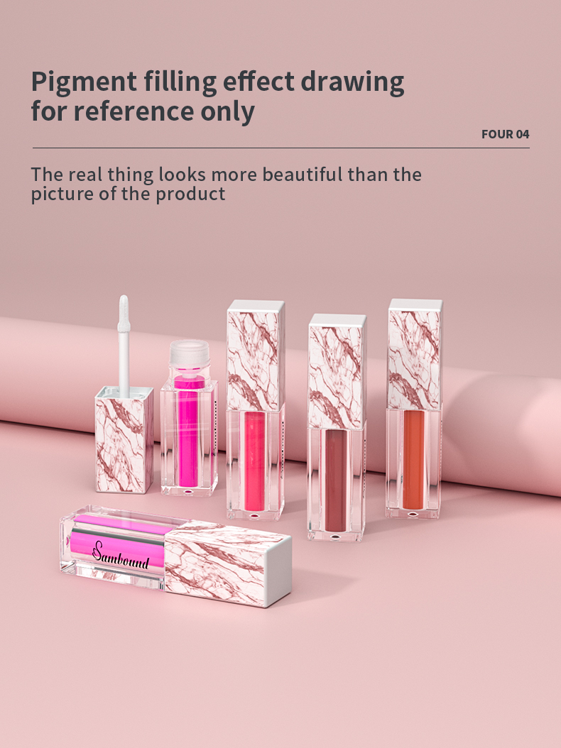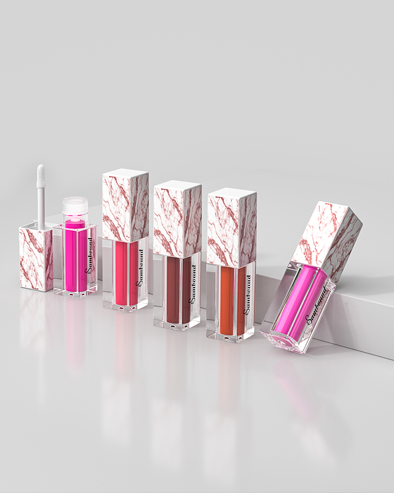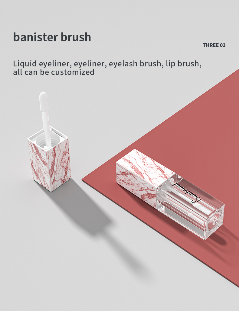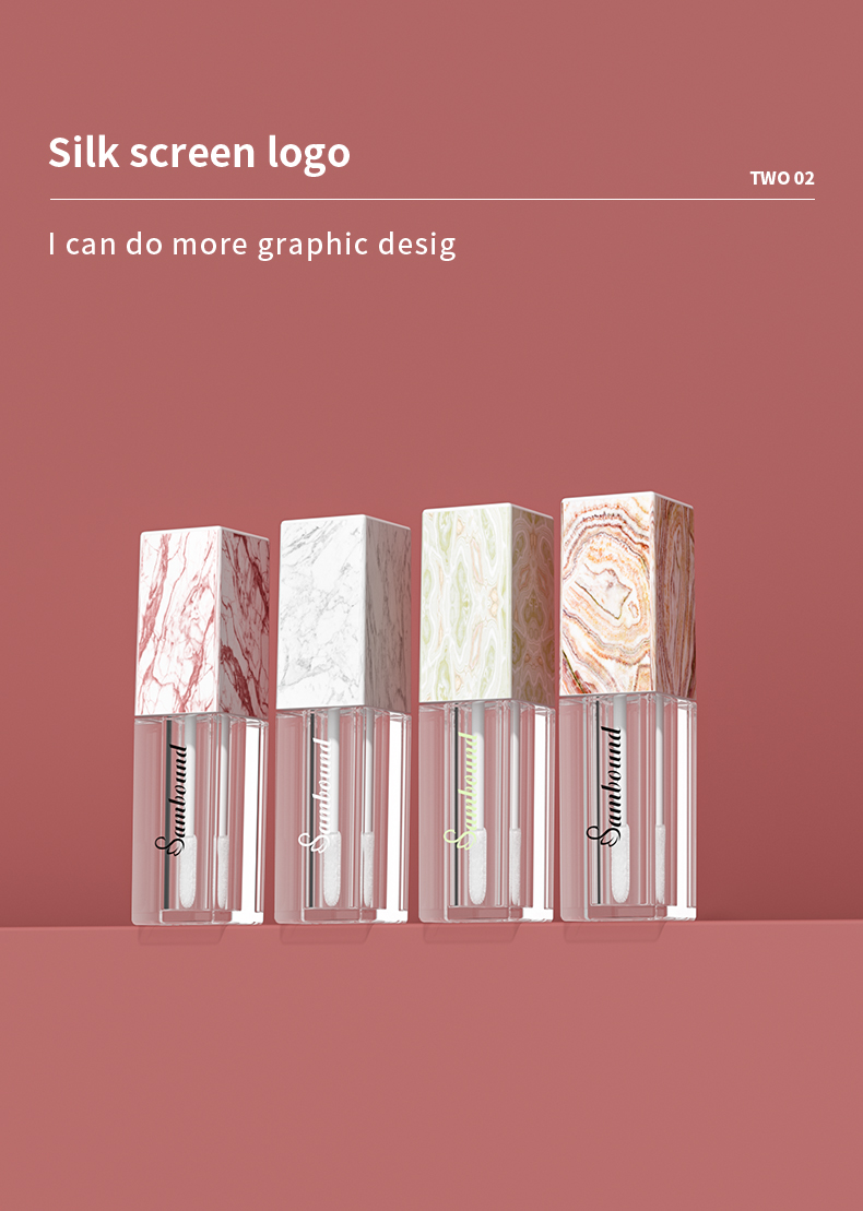 這款大理石紋唇釉管特點(diǎn):熱轉(zhuǎn)印大理石紋,可以定制紋路,方形5 6ml容量,也可以定制logo顏色的注塑加工廠家