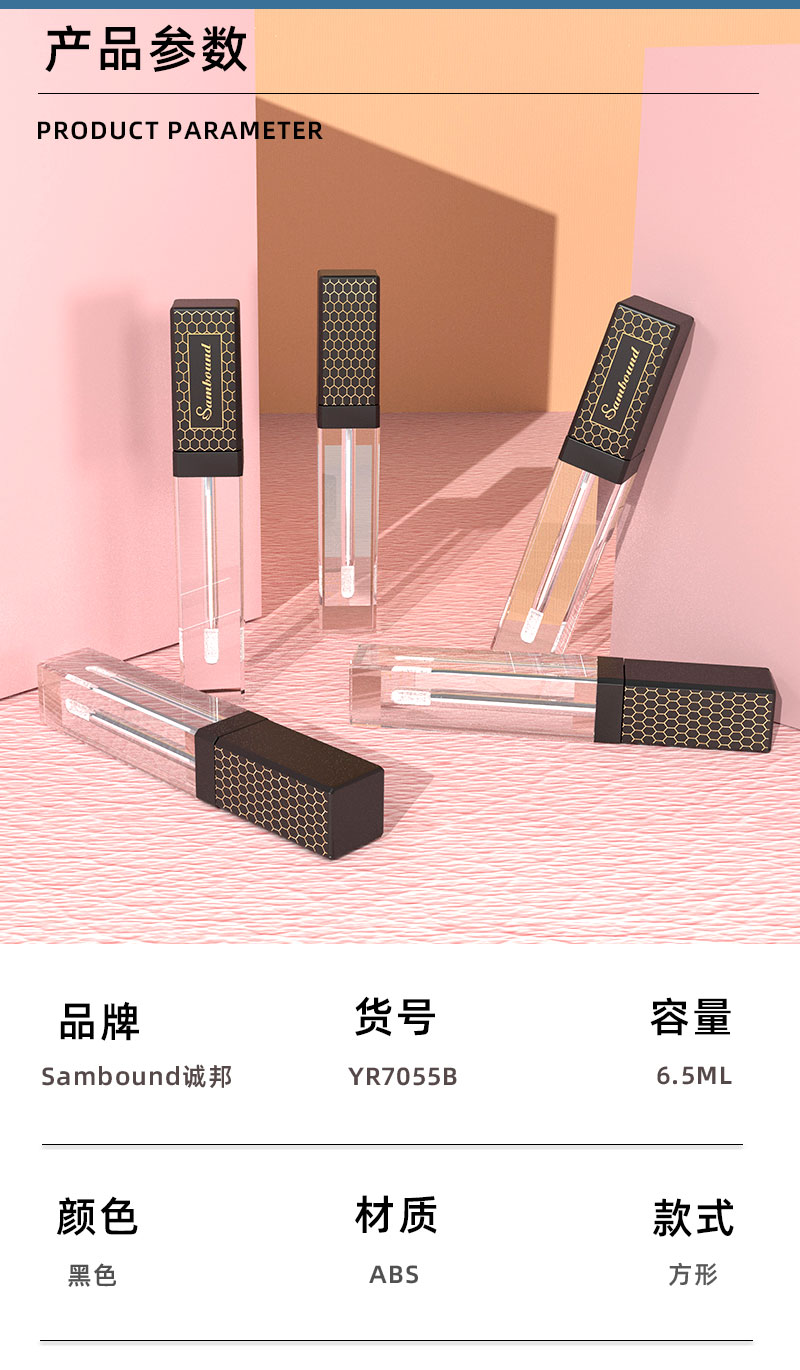產(chǎn)品名稱唇釉包材產(chǎn)品貨號YR7055b容量6ML顏色亞黑色-可定制材質(zhì)ABS重量32 9g制做工藝注塑 噴漆包裝方式單個OPP袋裝再用紙箱