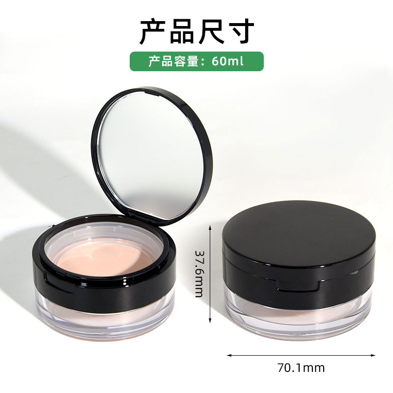 產(chǎn)品名稱散粉盒包材產(chǎn)品貨號YR5068L容量60ML顏色黑色-可定制材質(zhì)ABS重量32 9g制做工藝注塑包裝方式單個(gè)OPP袋裝再用紙箱
