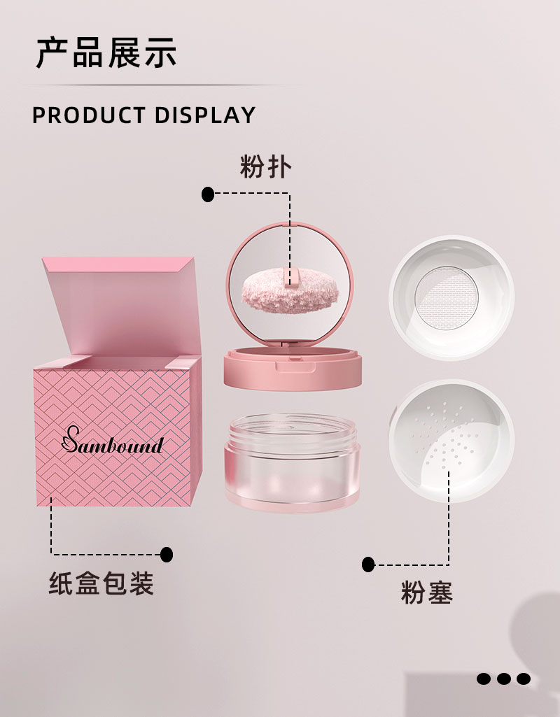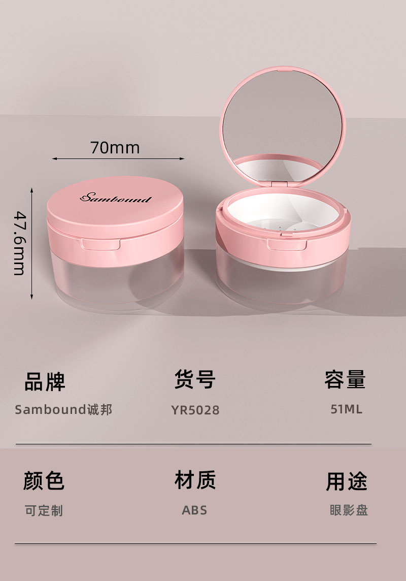 定制50G圓形散粉盒帶粉撲鏡子可選彈力網(wǎng)硅膠網(wǎng)