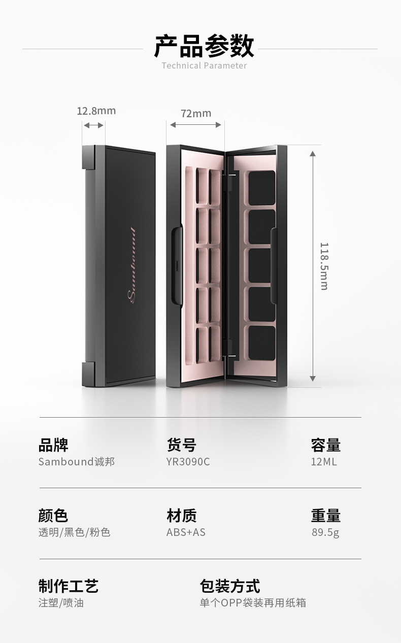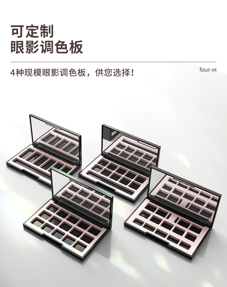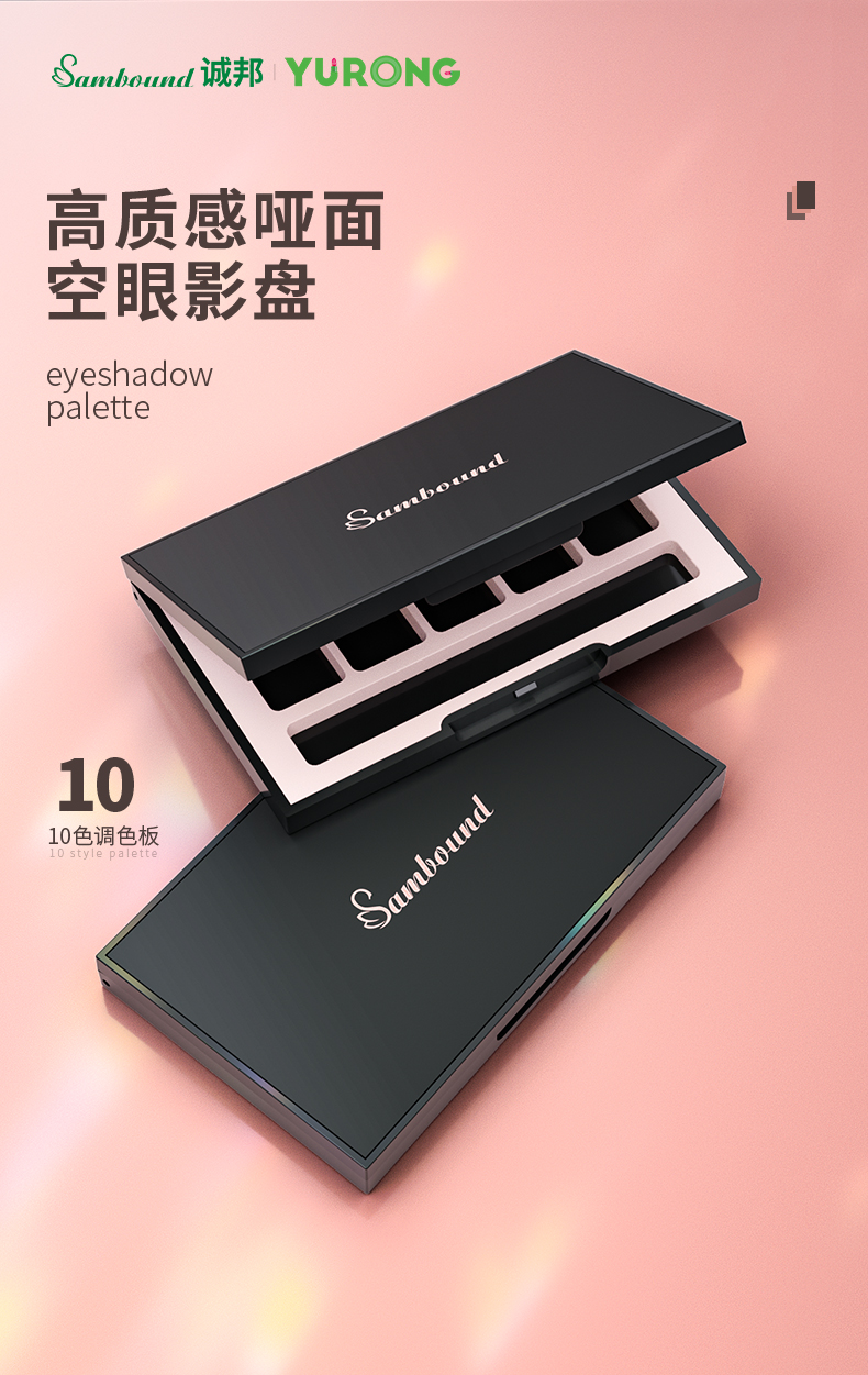 10色高質(zhì)感啞面空眼影盤特點(diǎn):這款眼影盤采用啞光表面處理工藝、可以定制logo和圖案,內(nèi)附高清鏡子。