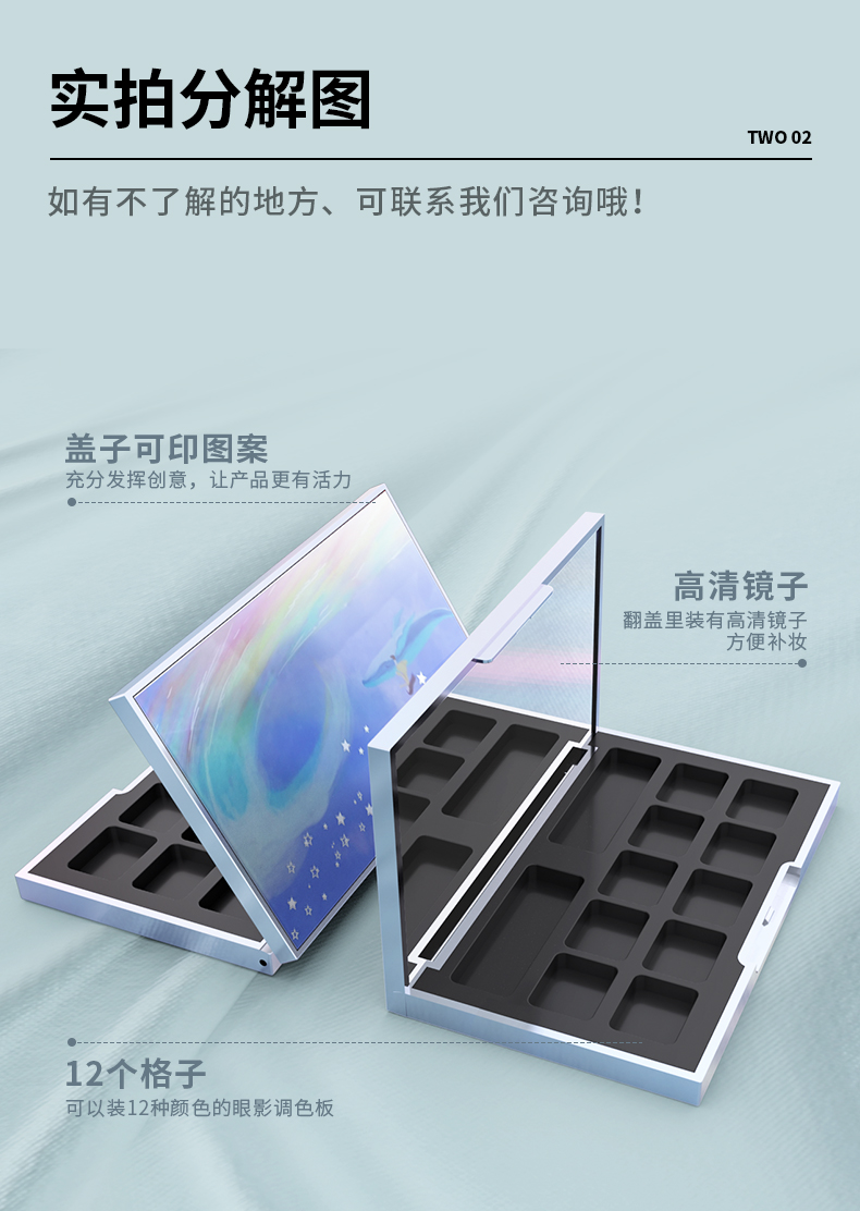 東莞市誠邦供應(yīng)12色眼影盤包裝定制,高清鏡面,可以定制不同顏色和logo。