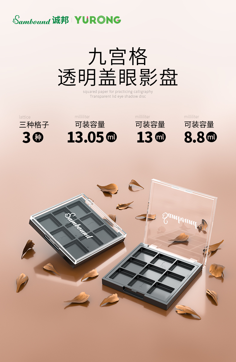 化妝品包裝供應(yīng)商定制方形透明9色眼影盤包材,該產(chǎn)品特點:透明蓋子、可定制logo、顏色及表面處理,采用按扣開關(guān),公模定制加工生產(chǎn)。